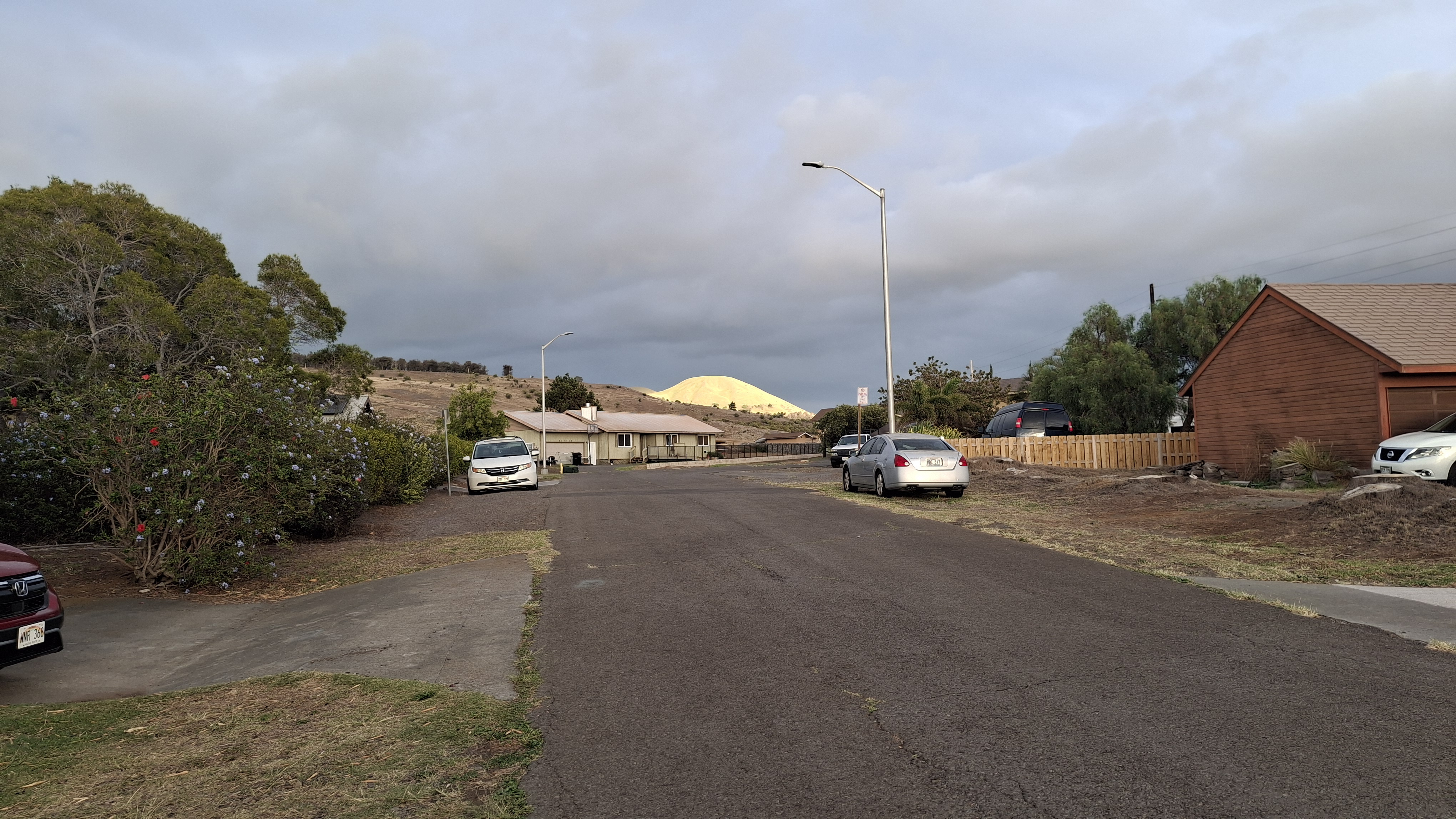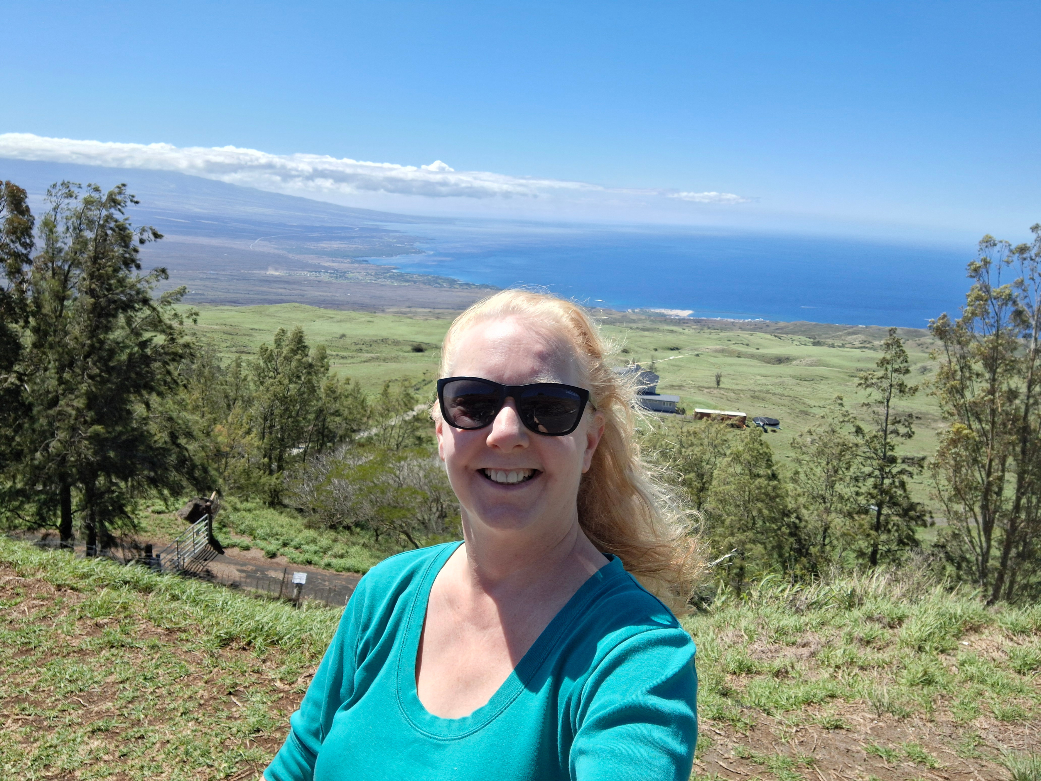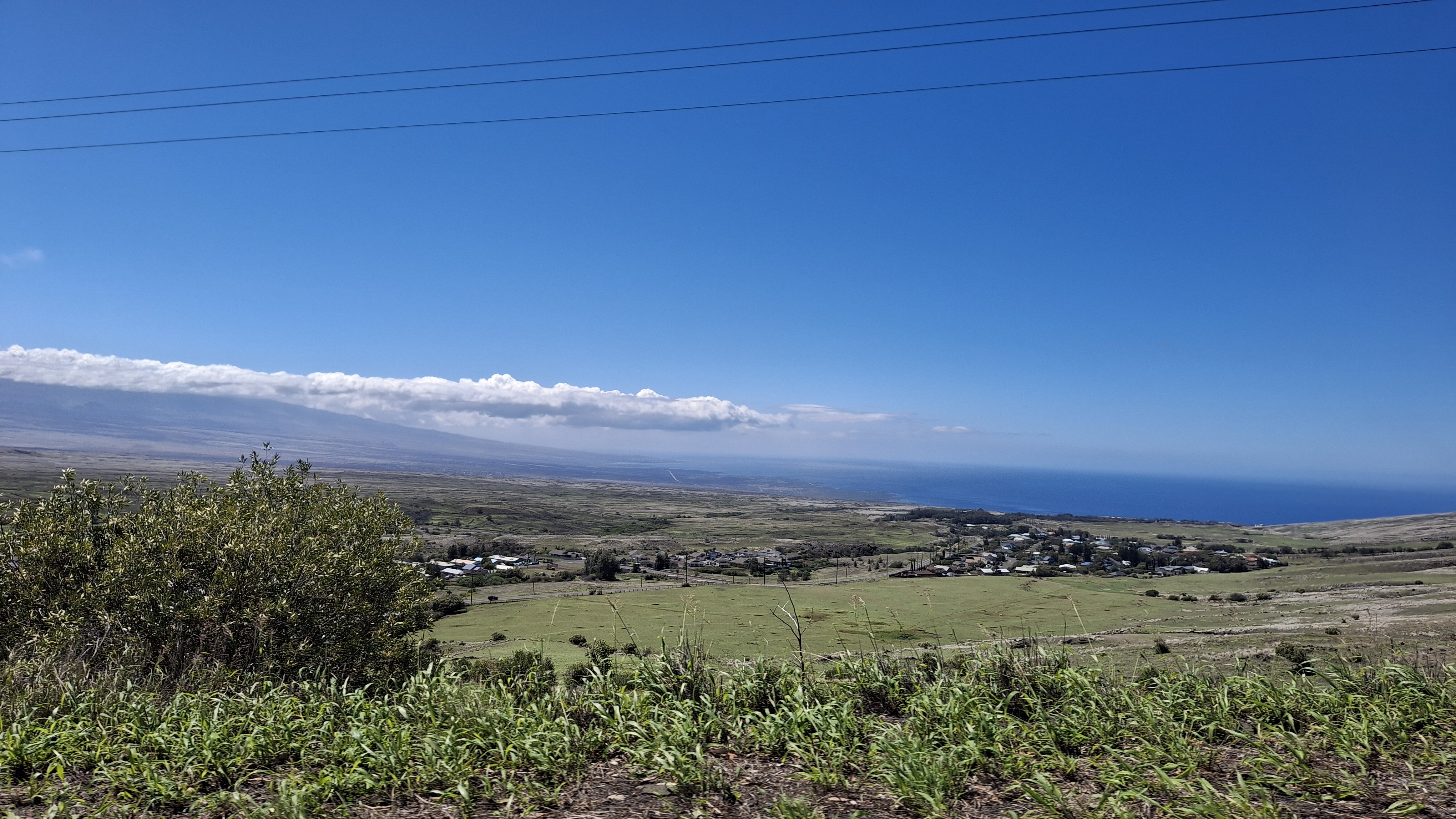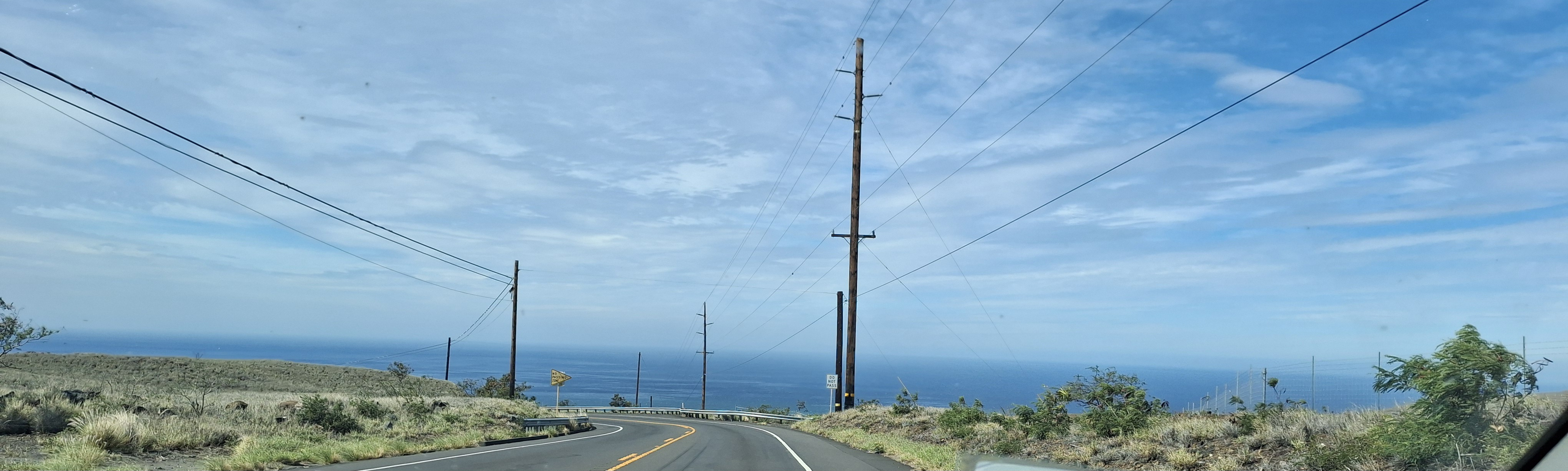 Waimea is 2500 feet up the side of Kohala, an extinct volcano. The peak is only 3500 feet high, but the view is pretty spectacular from up there. To go down the mountain to the beach it is a 12 mile drive, and it is all down hill. (it is VERY easy to speed down these roads, even if you aren't stepping on the gas!)