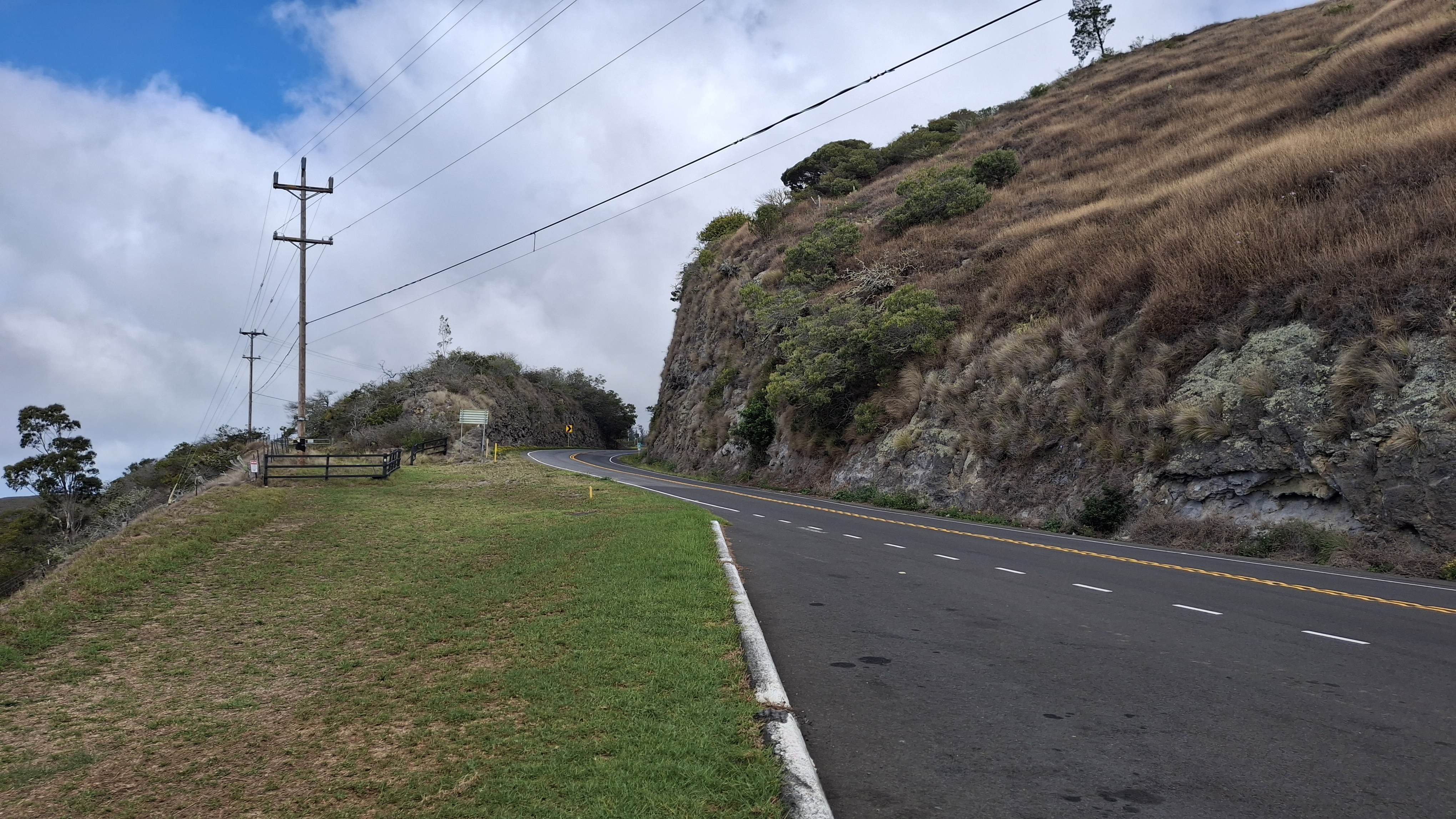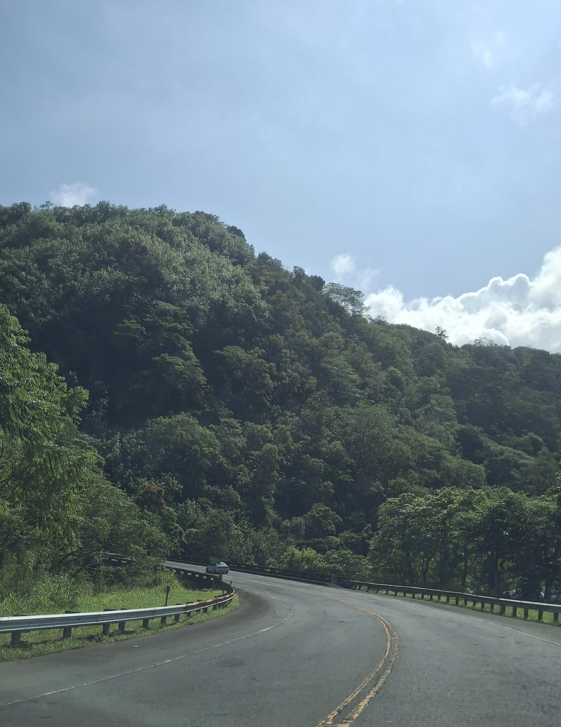 There are cliffs and gorges along the edges of the island, with rather sheer rock cuts going along the sides of the mountains. All the mountains are actually volcanos, and are rather gigantic, and are not round cones or pyramids in shape. Most of the roads go around the edges of the island, with only a couple cutting through the middle between the mountains.