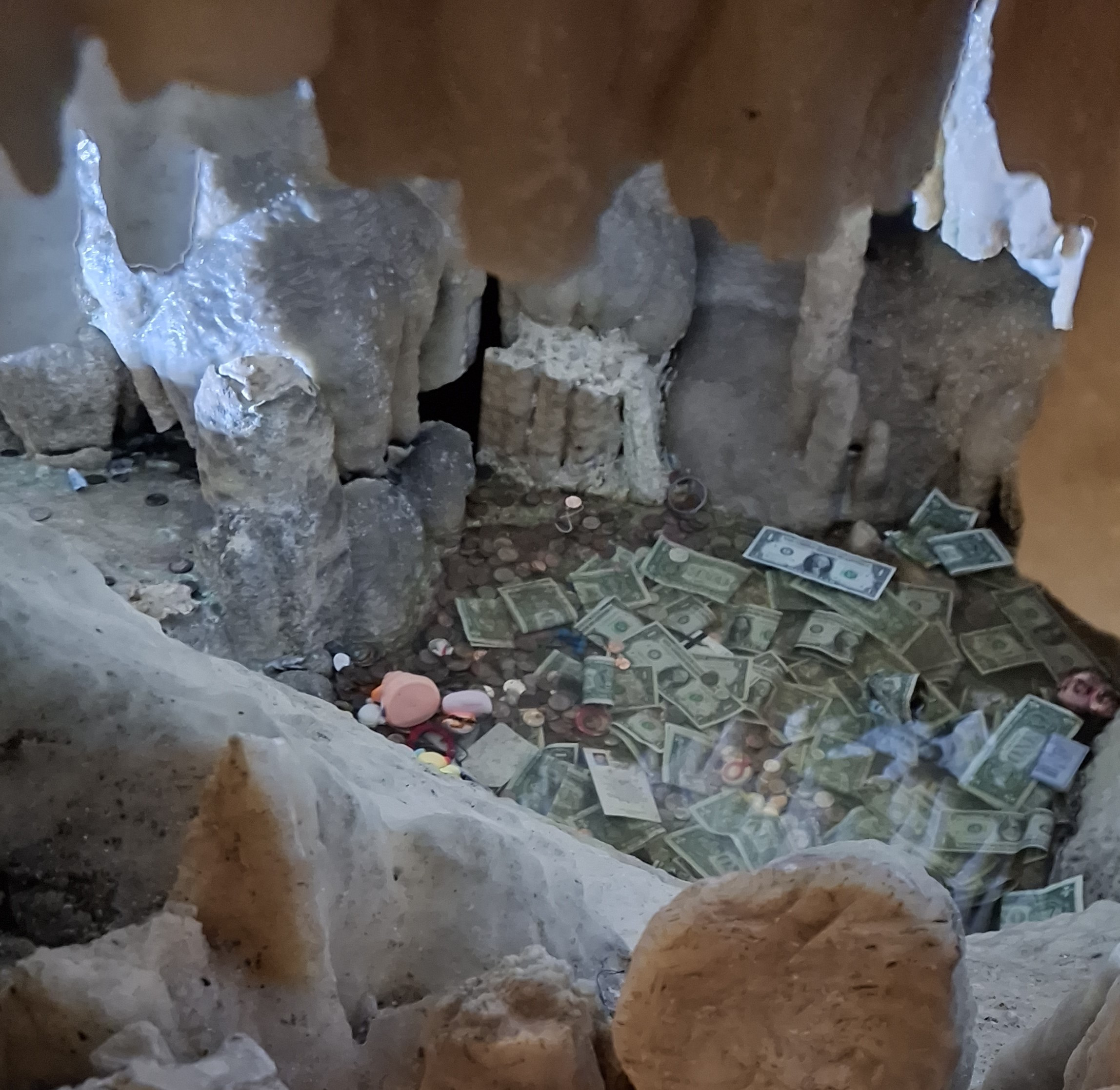 I don't know if the tour guides have seen this little pool, tucked in behind the very end of the walkway in the Fantasy caves. Maybe at the end of the season they have a way to scoop it out. Gives new definition to "Tip Pool!"