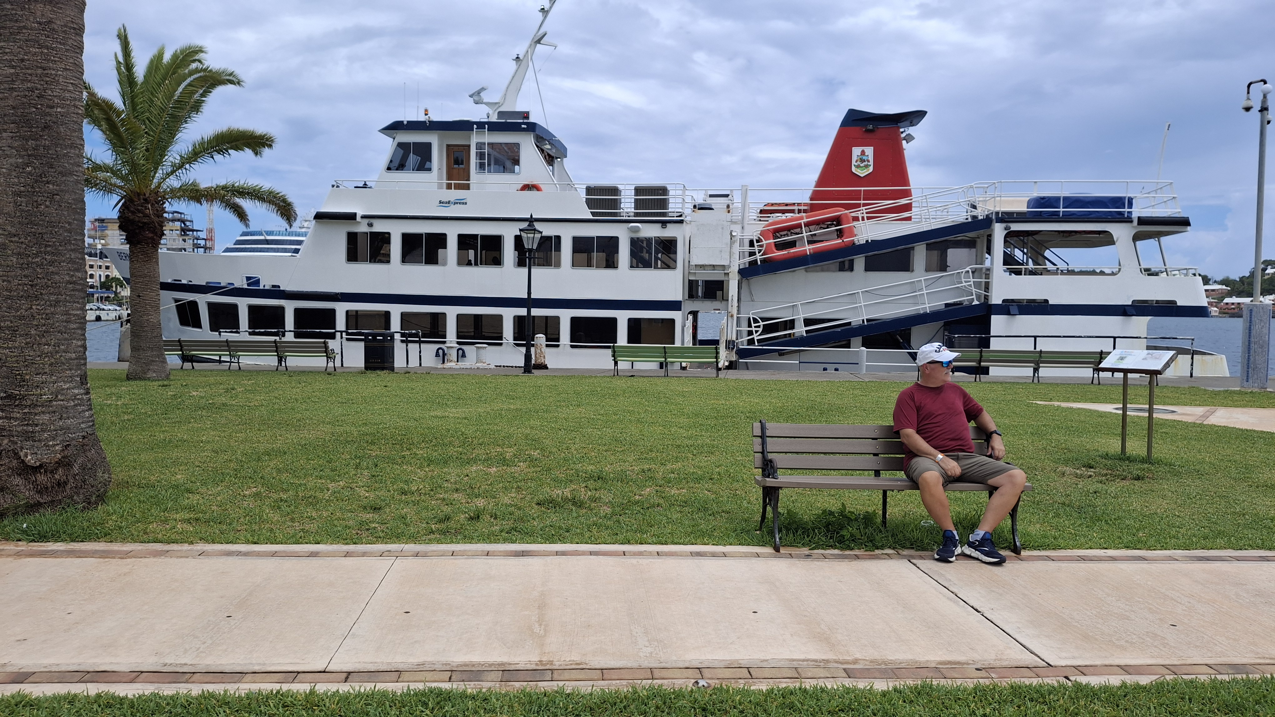 As part of our bus pass app we were able to use it on the ferries as well. Awesome. The second day of Cup Match the whole town of Hamilton was shut down (I had to beg for Splenda and salad dressing at the Esso gas station instead of just buying some at the market, which was closed), so we took the ferry out to the Royal Dockyards, where there were some businesses open. It was fun being able to see the coastline along the way, and enjoy the wind making my hair beat me up. At least I wasn’t trying to eat ice cream at the time.